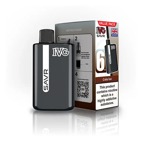 It features a 650mAh rechargeable internal battery, a prefilled 2ml pod, and a 4ml e-liquid container, giving users 6ml of their renowned IVG e-liquid flavours. The IVG SAVR ensures up to 3,000 puffs and ease of use. Pre-filled with 20mg nic salt e-liquid delivers a smooth MTL (Mouth to Lung) vape. The IVG SAVR has a mesh coil to provide exceptional flavour with every puff.