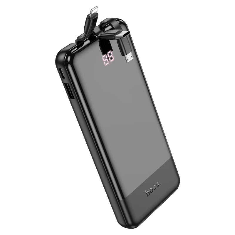 J114A Charger, mobile power bank, 20000mAh, single Type-C and single Micro-USB inputs, single USB-A port and built-in cables for Lightning, Type-C and Micro-USB outputs