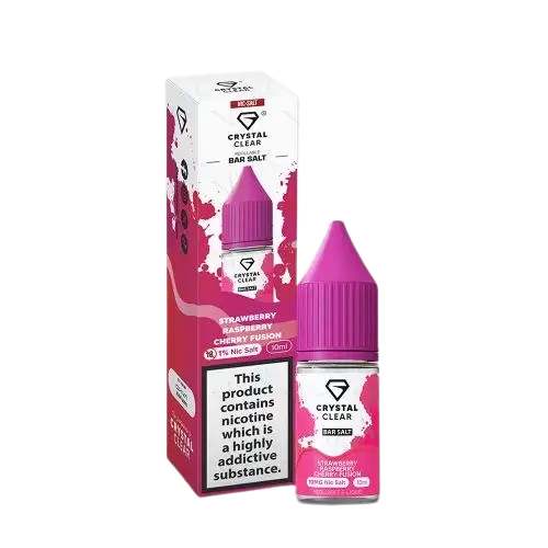 Crystal Clear Bar Salts Strawberry Raspberry Cherry Fusion brings a vibrant infusion of luscious strawberries, sweetly tart cherries and floral undertones of ripe raspberries to deliver you that berrylicious vaping venture.