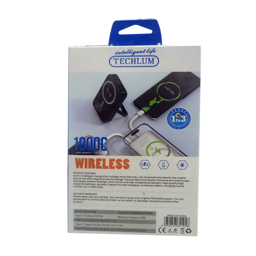 Experience the future of charging with the Techlum 10000 Wireless Power Bank, designed for those who demand speed, style, and seamless convenience.